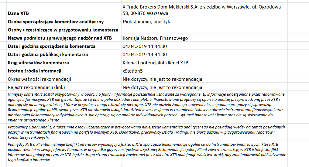 Ta publikacja handlowa jest informacyjna i edukacyjna. Nie jest rekomendacją inwestycyjną ani informacją rekomendującą lub sugerującą strategię inwestycyjną. W materiale nie sugerujemy żadnej strategii inwestycyjnej ani nie świadczymy usługi doradztwa inwestycyjnego. Materiał nie uwzględnia indywidualnej sytuacji finansowej, potrzeb i celów inwestycyjnych klienta. Nie jest też ofertą sprzedaży ani subskrypcji. Nie jest zaproszeniem do nabycia, reklamą ani promocją jakichkolwiek instrumentów finansowych. Publikację handlową przygotowaliśmy starannie i obiektywnie. Przedstawiamy stan faktyczny znany autorom w chwili tworzenia dokumentu. Nie umieszczamy w nim żadnych elementów oceniających. Informacje i badania oparte na historycznych danych lub wynikach oraz prognozy nie stanowią pewnego wskaźnika na przyszłość. Nie odpowiadamy za Twoje działania lub zaniechania, zwłaszcza za to, że zdecydujesz się nabyć lub zbyć instrumenty finansowe na podstawie informacji z tej publikacji handlowej. Nie odpowiadamy też za szkody, które mogą wynikać z bezpośredniego czy też pośredniego wykorzystania tych informacji. Inwestowanie jest ryzykowne. Inwestuj odpowiedzialnie.