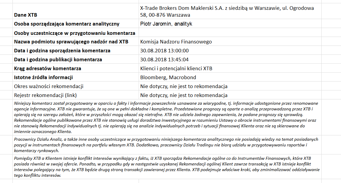 Ta publikacja handlowa jest informacyjna i edukacyjna. Nie jest rekomendacją inwestycyjną ani informacją rekomendującą lub sugerującą strategię inwestycyjną. W materiale nie sugerujemy żadnej strategii inwestycyjnej ani nie świadczymy usługi doradztwa inwestycyjnego. Materiał nie uwzględnia indywidualnej sytuacji finansowej, potrzeb i celów inwestycyjnych klienta. Nie jest też ofertą sprzedaży ani subskrypcji. Nie jest zaproszeniem do nabycia, reklamą ani promocją jakichkolwiek instrumentów finansowych. Publikację handlową przygotowaliśmy starannie i obiektywnie. Przedstawiamy stan faktyczny znany autorom w chwili tworzenia dokumentu. Nie umieszczamy w nim żadnych elementów oceniających. Informacje i badania oparte na historycznych danych lub wynikach oraz prognozy nie stanowią pewnego wskaźnika na przyszłość. Nie odpowiadamy za Twoje działania lub zaniechania, zwłaszcza za to, że zdecydujesz się nabyć lub zbyć instrumenty finansowe na podstawie informacji z tej publikacji handlowej. Nie odpowiadamy też za szkody, które mogą wynikać z bezpośredniego czy też pośredniego wykorzystania tych informacji. Inwestowanie jest ryzykowne. Inwestuj odpowiedzialnie.