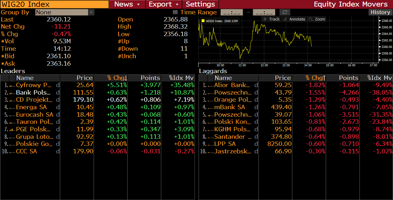 Zestawienie komponentów indeksu WIG20. Źródło: Bloomberg.