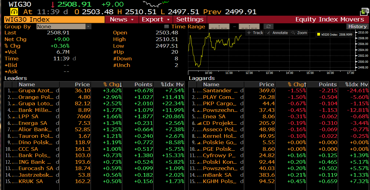 Skład indeksu WIG30 w południe. Źródło: Bloomberg