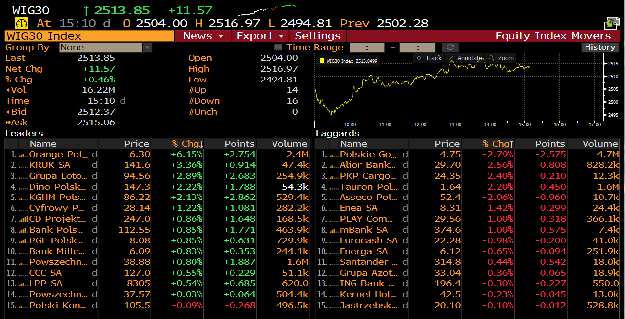Spółki z indeksu WIG30. Źródło: Bloomberg