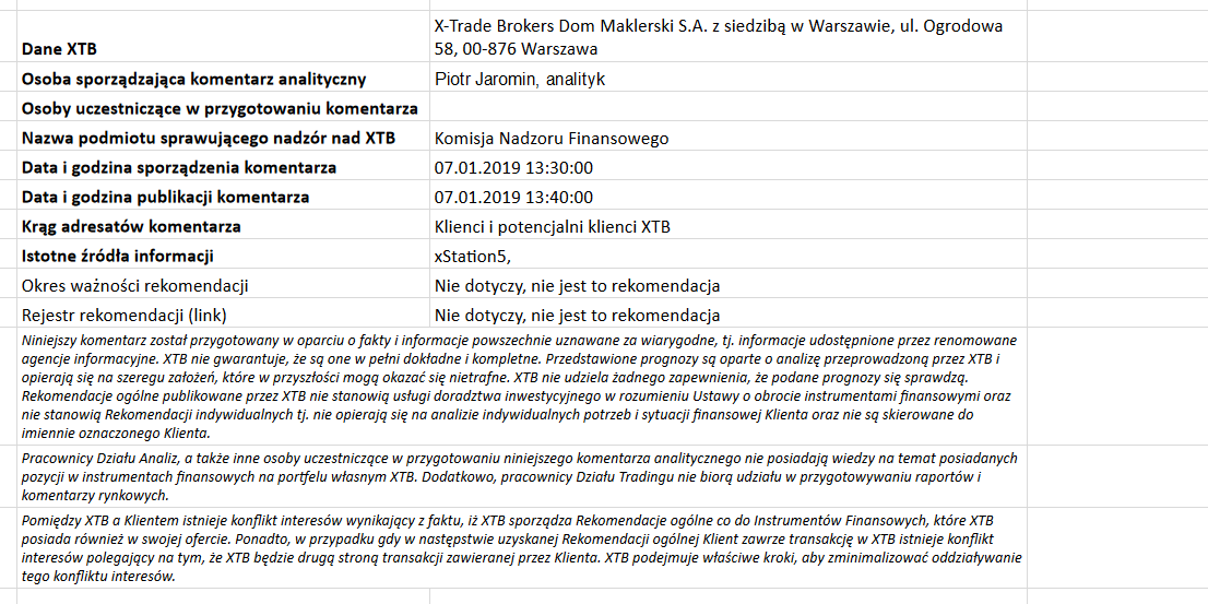 Ta publikacja handlowa jest informacyjna i edukacyjna. Nie jest rekomendacją inwestycyjną ani informacją rekomendującą lub sugerującą strategię inwestycyjną. W materiale nie sugerujemy żadnej strategii inwestycyjnej ani nie świadczymy usługi doradztwa inwestycyjnego. Materiał nie uwzględnia indywidualnej sytuacji finansowej, potrzeb i celów inwestycyjnych klienta. Nie jest też ofertą sprzedaży ani subskrypcji. Nie jest zaproszeniem do nabycia, reklamą ani promocją jakichkolwiek instrumentów finansowych. Publikację handlową przygotowaliśmy starannie i obiektywnie. Przedstawiamy stan faktyczny znany autorom w chwili tworzenia dokumentu. Nie umieszczamy w nim żadnych elementów oceniających. Informacje i badania oparte na historycznych danych lub wynikach oraz prognozy nie stanowią pewnego wskaźnika na przyszłość. Nie odpowiadamy za Twoje działania lub zaniechania, zwłaszcza za to, że zdecydujesz się nabyć lub zbyć instrumenty finansowe na podstawie informacji z tej publikacji handlowej. Nie odpowiadamy też za szkody, które mogą wynikać z bezpośredniego czy też pośredniego wykorzystania tych informacji. Inwestowanie jest ryzykowne. Inwestuj odpowiedzialnie.