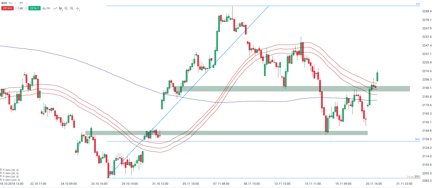 Przecena banków zatrzymała się, a W20 wybija kanał średnich 50-okresowych. Czy czeka nas rajd św. Mikołaja? Źródło: xStation5.