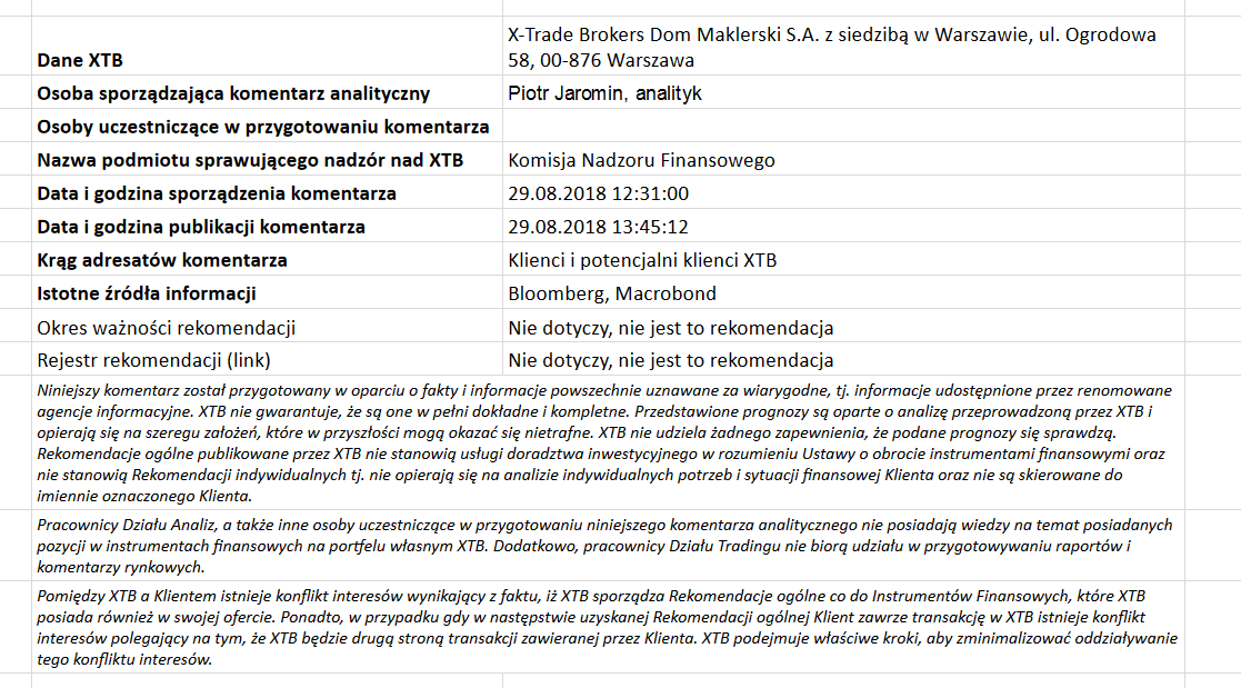 Ta publikacja handlowa jest informacyjna i edukacyjna. Nie jest rekomendacją inwestycyjną ani informacją rekomendującą lub sugerującą strategię inwestycyjną. W materiale nie sugerujemy żadnej strategii inwestycyjnej ani nie świadczymy usługi doradztwa inwestycyjnego. Materiał nie uwzględnia indywidualnej sytuacji finansowej, potrzeb i celów inwestycyjnych klienta. Nie jest też ofertą sprzedaży ani subskrypcji. Nie jest zaproszeniem do nabycia, reklamą ani promocją jakichkolwiek instrumentów finansowych. Publikację handlową przygotowaliśmy starannie i obiektywnie. Przedstawiamy stan faktyczny znany autorom w chwili tworzenia dokumentu. Nie umieszczamy w nim żadnych elementów oceniających. Informacje i badania oparte na historycznych danych lub wynikach oraz prognozy nie stanowią pewnego wskaźnika na przyszłość. Nie odpowiadamy za Twoje działania lub zaniechania, zwłaszcza za to, że zdecydujesz się nabyć lub zbyć instrumenty finansowe na podstawie informacji z tej publikacji handlowej. Nie odpowiadamy też za szkody, które mogą wynikać z bezpośredniego czy też pośredniego wykorzystania tych informacji. Inwestowanie jest ryzykowne. Inwestuj odpowiedzialnie.