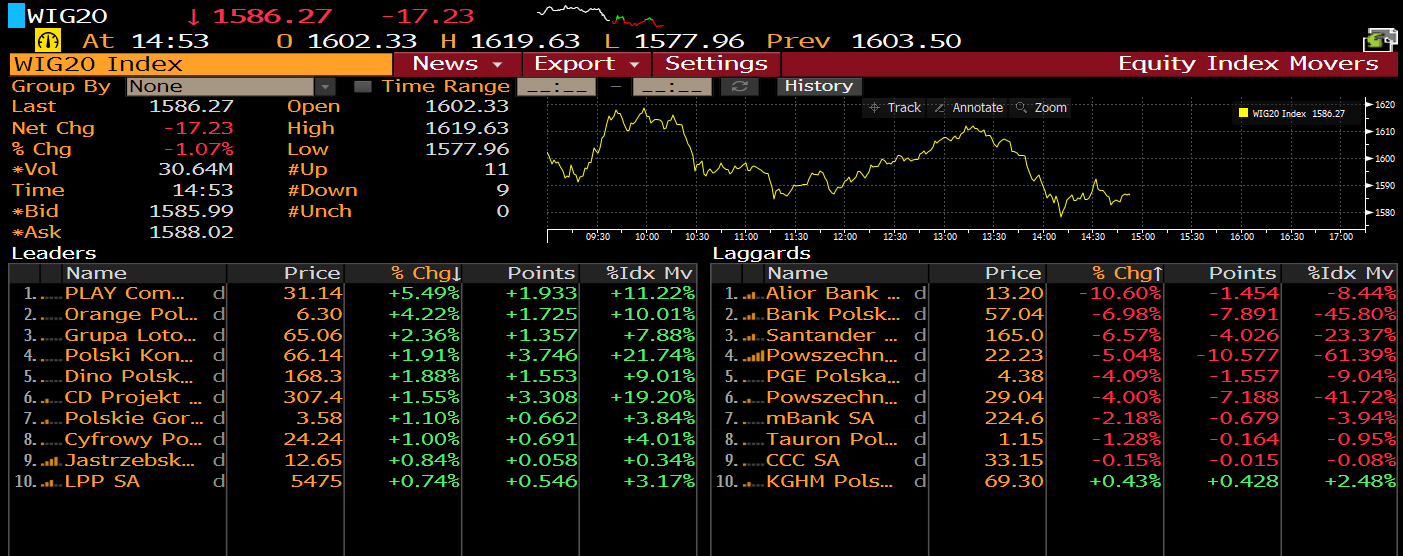 Spółki z indeksu WIG20. Źródło: Bloomberg