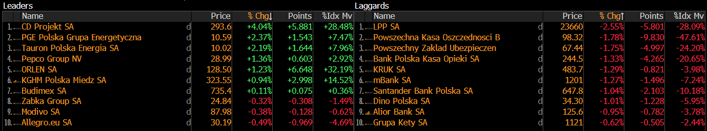 Spółki wchodzące w skład indeksu WIG20. Źródło: Bloomberg Finance L.P.