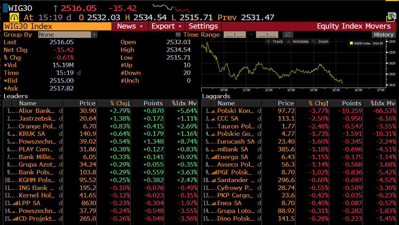Spółki z WIG30. Źródło: Bloomberg