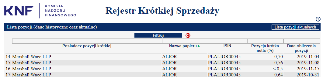 Rejestr Krótkiej Sprzedaży. Źródło: KNF