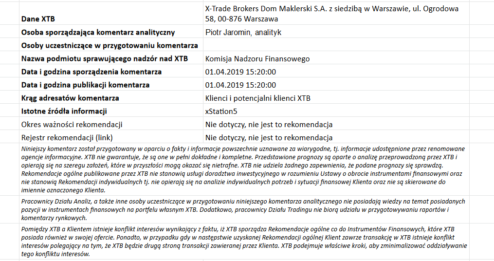 Ta publikacja handlowa jest informacyjna i edukacyjna. Nie jest rekomendacją inwestycyjną ani informacją rekomendującą lub sugerującą strategię inwestycyjną. W materiale nie sugerujemy żadnej strategii inwestycyjnej ani nie świadczymy usługi doradztwa inwestycyjnego. Materiał nie uwzględnia indywidualnej sytuacji finansowej, potrzeb i celów inwestycyjnych klienta. Nie jest też ofertą sprzedaży ani subskrypcji. Nie jest zaproszeniem do nabycia, reklamą ani promocją jakichkolwiek instrumentów finansowych. Publikację handlową przygotowaliśmy starannie i obiektywnie. Przedstawiamy stan faktyczny znany autorom w chwili tworzenia dokumentu. Nie umieszczamy w nim żadnych elementów oceniających. Informacje i badania oparte na historycznych danych lub wynikach oraz prognozy nie stanowią pewnego wskaźnika na przyszłość. Nie odpowiadamy za Twoje działania lub zaniechania, zwłaszcza za to, że zdecydujesz się nabyć lub zbyć instrumenty finansowe na podstawie informacji z tej publikacji handlowej. Nie odpowiadamy też za szkody, które mogą wynikać z bezpośredniego czy też pośredniego wykorzystania tych informacji. Inwestowanie jest ryzykowne. Inwestuj odpowiedzialnie.