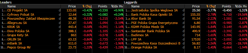 Skład indeksu WIG20. Źródło: Bloomberg Finance L.P.