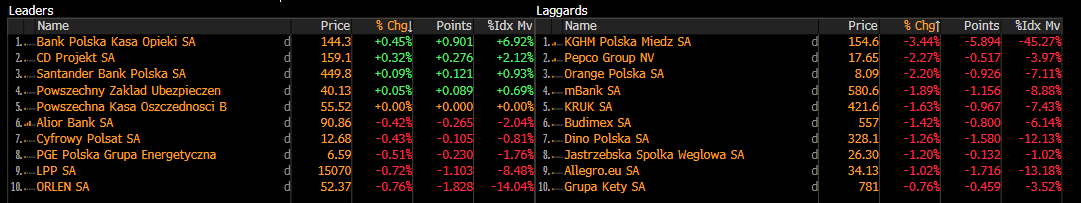Spółki wchodzące w skład indeksu WIG20. Źródło: Bloomberg Finance L.P.