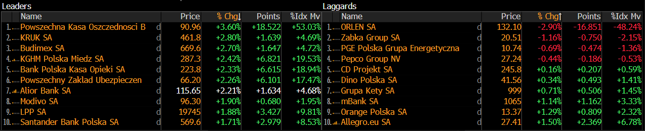 Spółki wchodzące w skład indeksu WIG20. Źródło: Bloomberg Finance L.P.