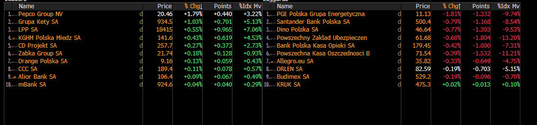 Spółki wchodzące w skład indeksu WIG20. Źródło: Bloomberg Finance L.P.