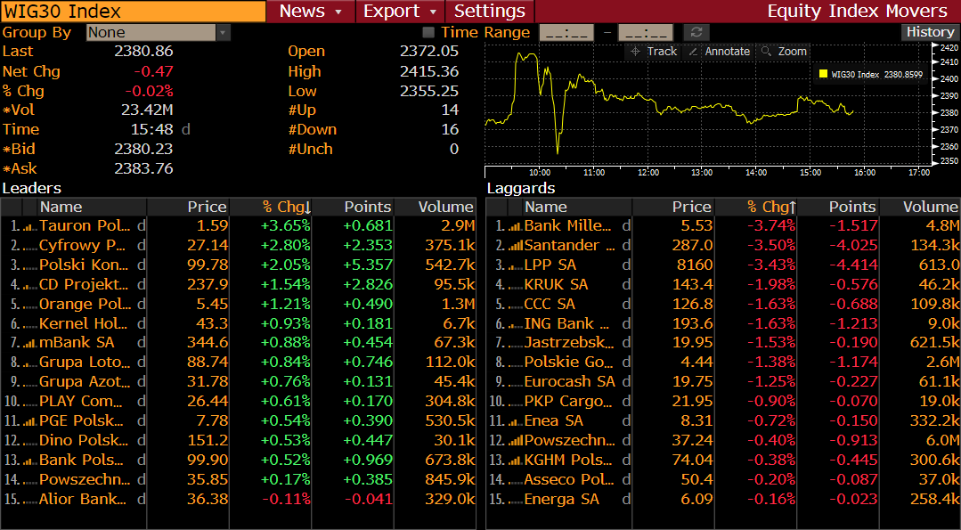 Spółki z indeksu WIG30. Źródło: Bloomberg