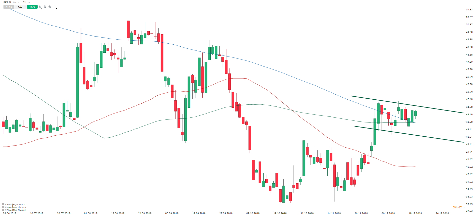 Notowania PKP Cargo (PKP.PL) pozostają w kanale spadkowym. Wyłamanie górnego ograniczenia, mogłoby otworzyć drogę w kierunku maksimów z sierpnia 2018 roku. Źródło: xStation5.