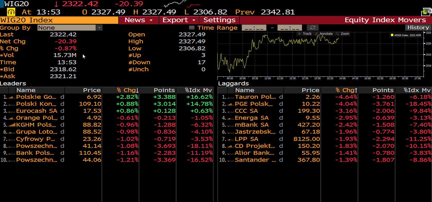 Zestawienie komponentów indeksu WIG20. Źródło: Bloomberg.