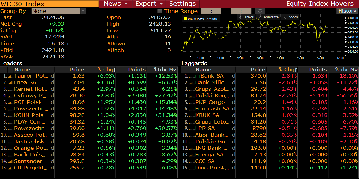 Spółki z indeksu WIG30. Źródło: Bloomberg