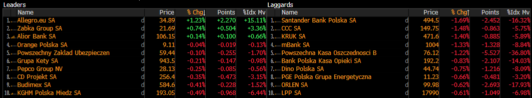 Spółki wchodzące w skład indeksu WIG20. Źródło: Bloomberg Finance L.P.