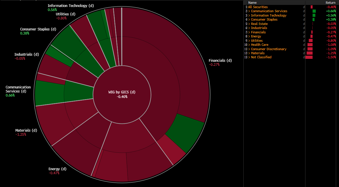 Podział sektorów w indeksie WIG. Źródło: Bloomberg Finance L.P.