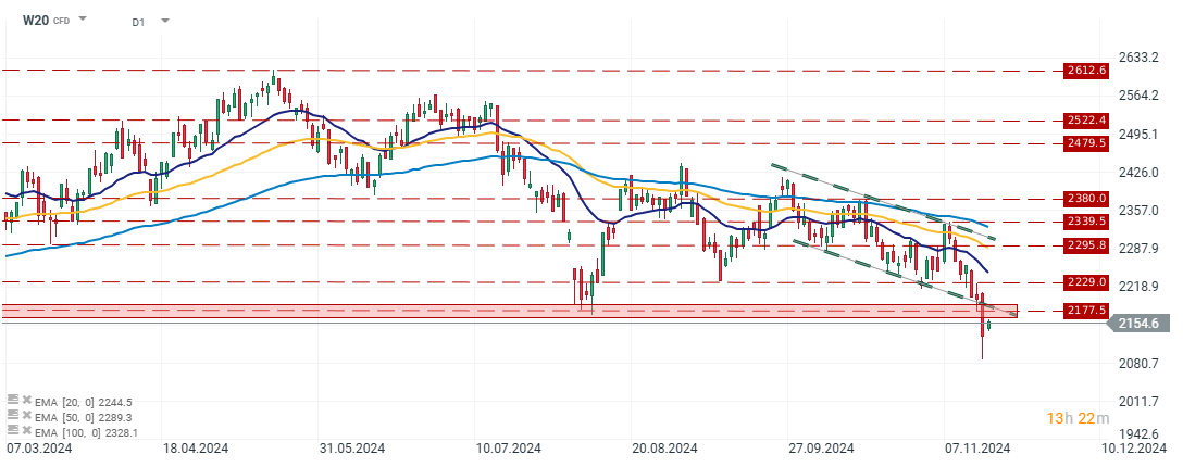 W indeksie sWIG80 wyróżniają się przede wszystkim dwie spółki: Molecure oraz Tarczyński. Obie rosną o ponad 12%, z czego Tarczyński osiąga nowy poziom ATH. Warto pamiętać, że spółka 29.11 opublikuje swoje wyniki, wobec czego presja po tak mocnych wzrostach na pozytywne zaskoczenie jest jeszcze wyższa.