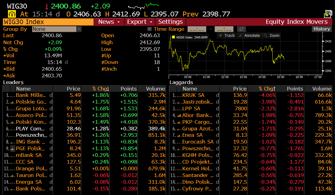 Spółki z indeksu WIG30. Źródło: Bloomberg