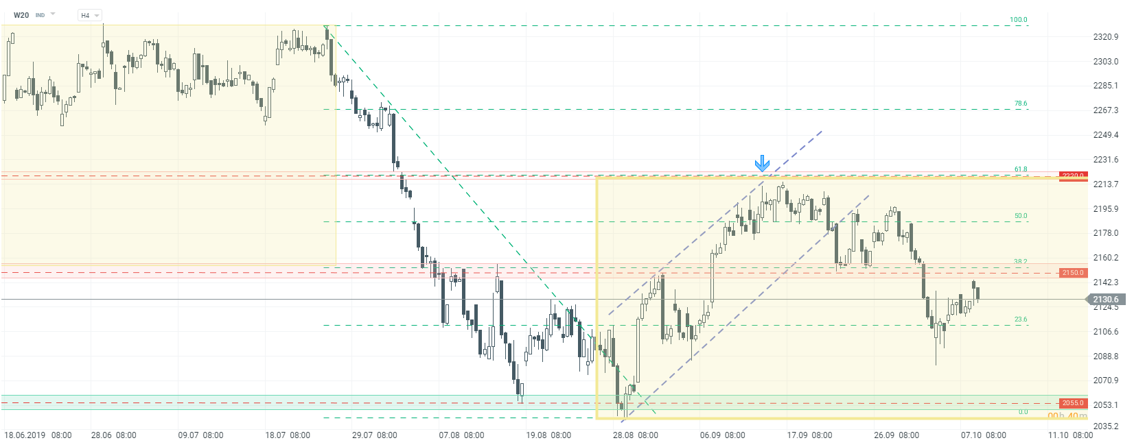 Sytuacja techniczna na indeksie największych spółek nie uległa zmianie. Pomimo, że dziś na polskiej giełdzie przeważają kupujący, to główna tendencja pozostaje spadkowa. Aby myśleć o większym odbiciu kurs musiałby pierwszej kolejności wyjść powyżej strefy oporowej przy 2150 pkt. Dopóki notowania znajdują się poniżej, bardziej prawdopodobny wydaje się ruch w kierunku ostatnich minimów. Ponadto biorąc pod uwagę niezbyt ciekawe nastroje na europejskim rynku akcji, kupujący mogą być w tarapatach.