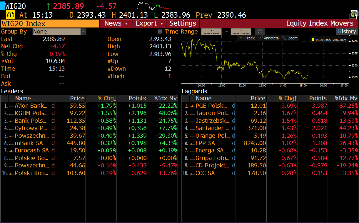 - WIG20 (W20) cały czas krąży w okolicach 2400 pkt.