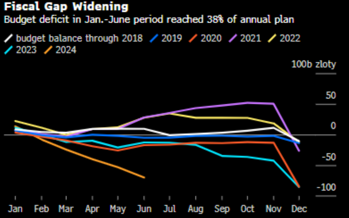 Deficyt budżetowy Polski. Źródło: Bloomberg Finance L.P.