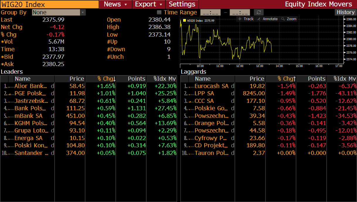 Zestawienie komponentów indeksu WIG20. Źródło: Bloomberg.