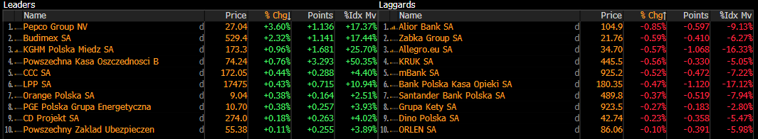 Spółki wchodzące w skład indeksu WIG20. Źródło: Bloomberg Finance L.P.
