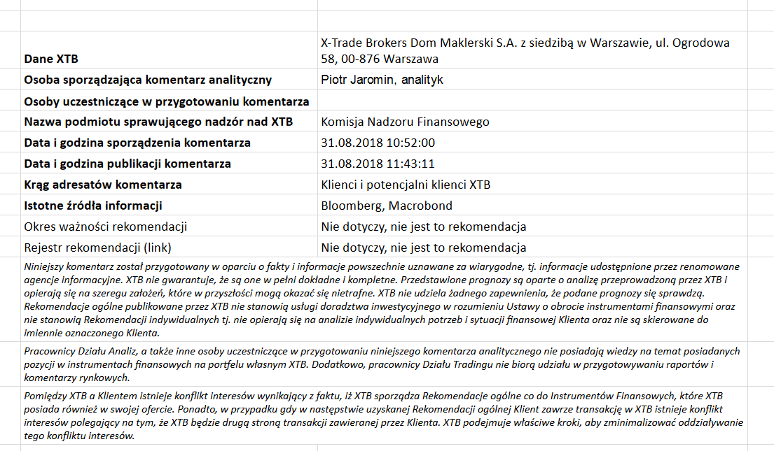 Ta publikacja handlowa jest informacyjna i edukacyjna. Nie jest rekomendacją inwestycyjną ani informacją rekomendującą lub sugerującą strategię inwestycyjną. W materiale nie sugerujemy żadnej strategii inwestycyjnej ani nie świadczymy usługi doradztwa inwestycyjnego. Materiał nie uwzględnia indywidualnej sytuacji finansowej, potrzeb i celów inwestycyjnych klienta. Nie jest też ofertą sprzedaży ani subskrypcji. Nie jest zaproszeniem do nabycia, reklamą ani promocją jakichkolwiek instrumentów finansowych. Publikację handlową przygotowaliśmy starannie i obiektywnie. Przedstawiamy stan faktyczny znany autorom w chwili tworzenia dokumentu. Nie umieszczamy w nim żadnych elementów oceniających. Informacje i badania oparte na historycznych danych lub wynikach oraz prognozy nie stanowią pewnego wskaźnika na przyszłość. Nie odpowiadamy za Twoje działania lub zaniechania, zwłaszcza za to, że zdecydujesz się nabyć lub zbyć instrumenty finansowe na podstawie informacji z tej publikacji handlowej. Nie odpowiadamy też za szkody, które mogą wynikać z bezpośredniego czy też pośredniego wykorzystania tych informacji. Inwestowanie jest ryzykowne. Inwestuj odpowiedzialnie.