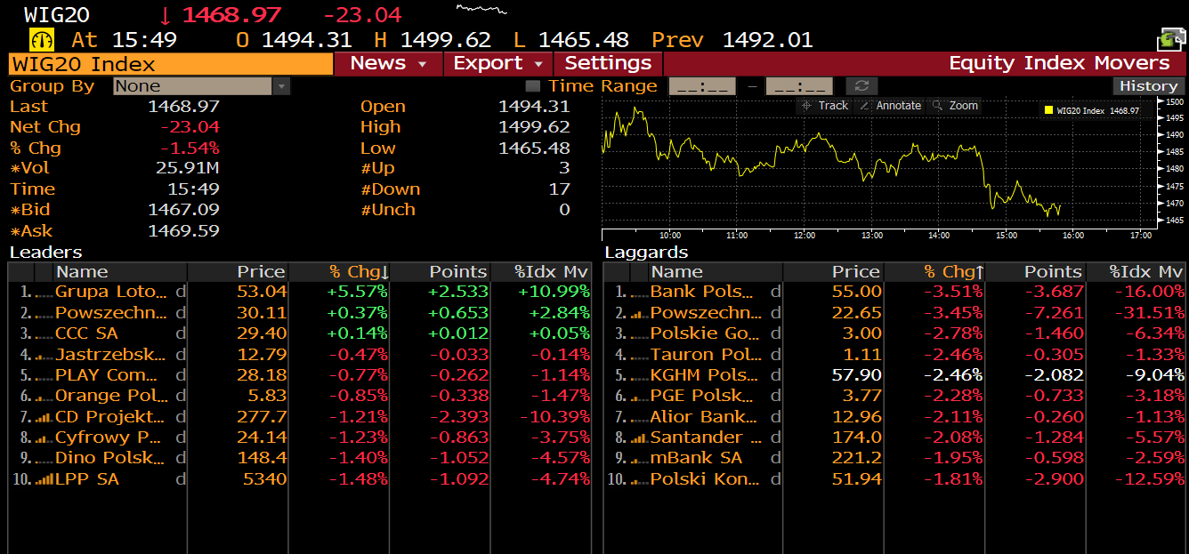 Spółki z WIG20. Źródło: Bloomberg