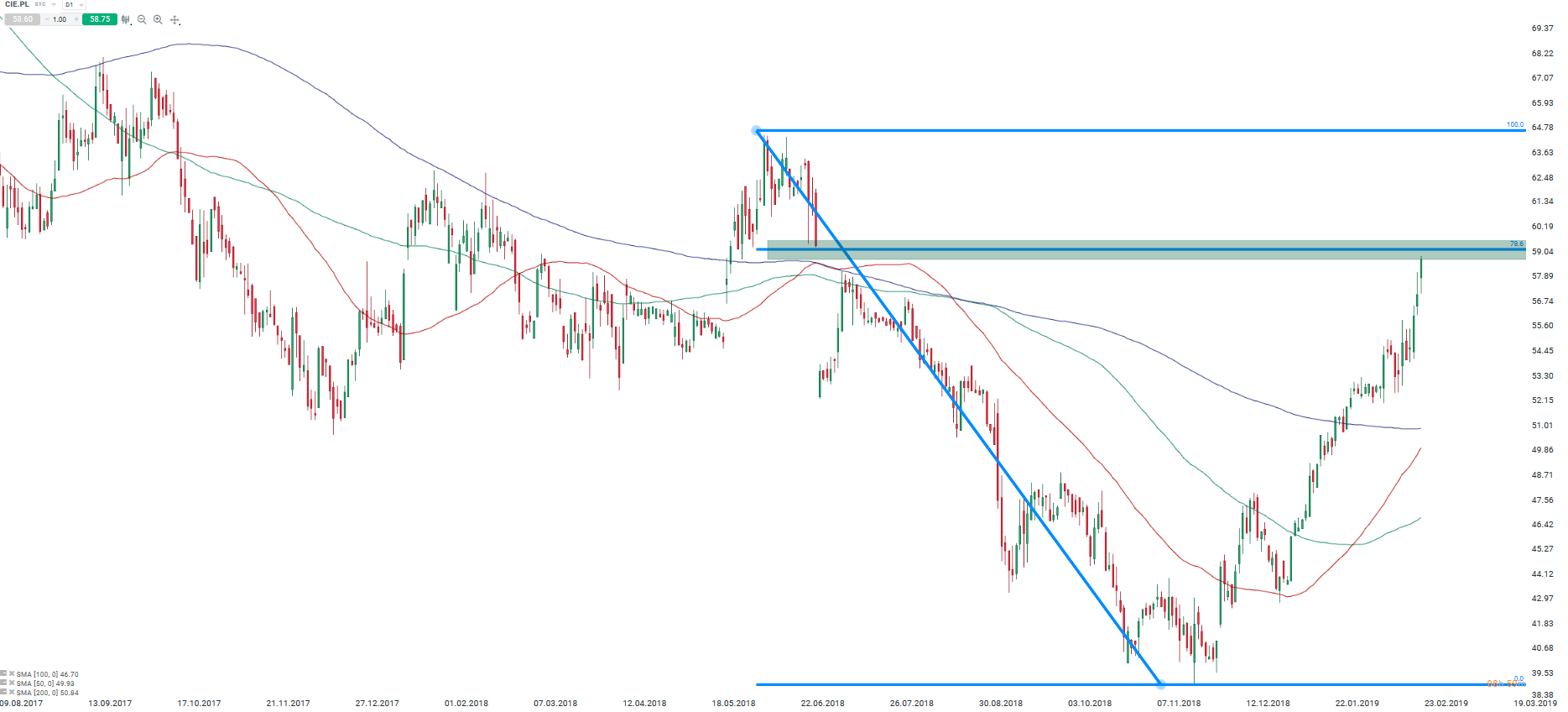 Ciech (CIE.PL) kontynuuje silne odbicie i dociera w okolice zniesienia 78,6% ostatniej fali spadkowej. Źródło: xStation5.