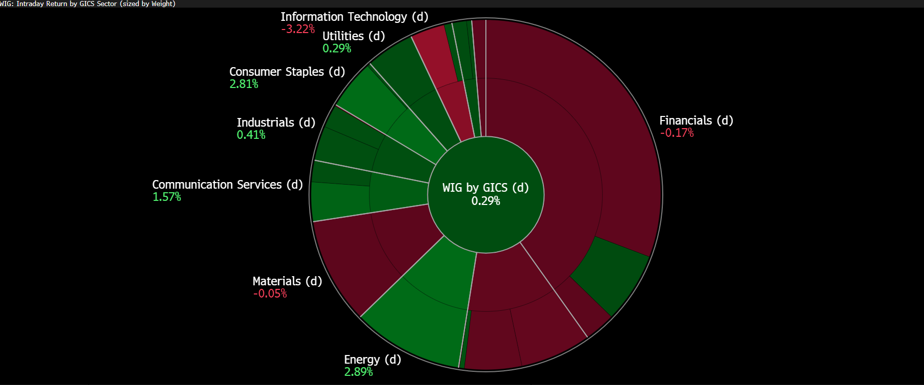 Podział indeksu WIG na sektory. Źródło: Bloomberg Finance L.P.