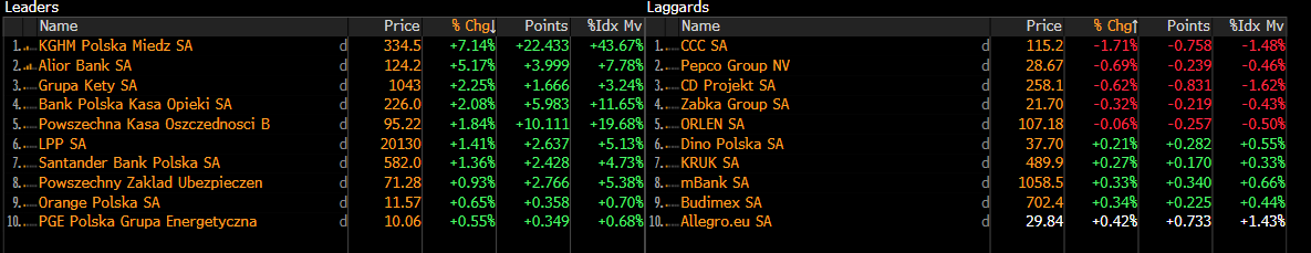W20 rośnie 2%📈Odbicie KGHM wspiera polską giełdę