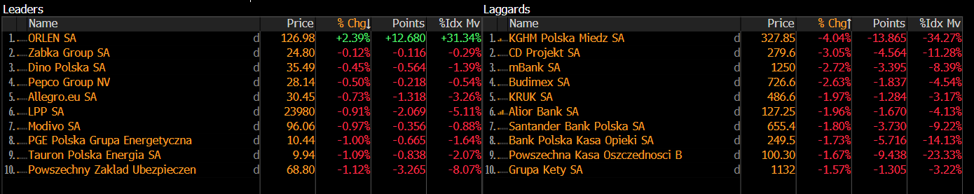 Spółki wchodzące w skład indeksu WIG20. Źródło: Bloomberg Finance L.P.