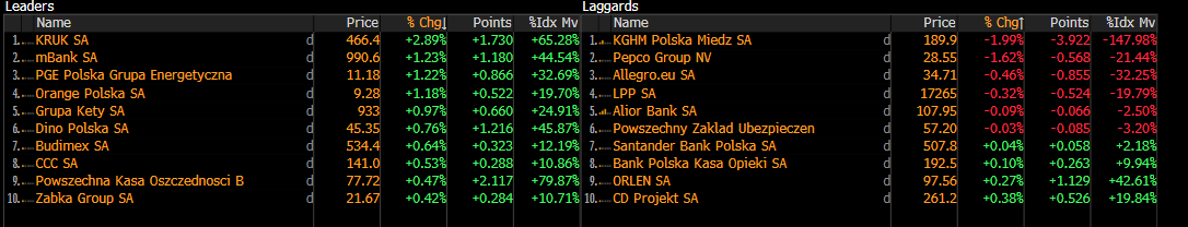 Spółki wchodzące w skład indeksu WIG20. Źródło: Bloomberg Finance L.P.