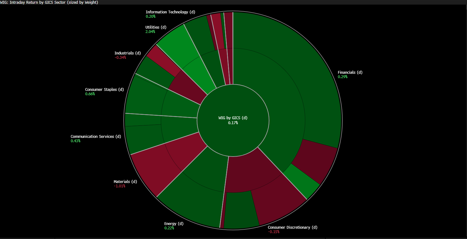 W połowie trwania piątkowej sesji na GPW widzimy niewielkie wzrosty głównych indeksów. WIG20 oscyluje wokół 3.000 pkt., bez trwałego wybicia powyżej tej granicy, a większość blue chipów zmienia się o mniej niż 1 procent. Najwięcej zyskuje Kruk z wynikiem niecałych 3 procent, natomiast KGHM odnotował spadek o prawie 2 procent po wcześniejszych wzrostach. Dobrze radziły sobie również CD Projekt i CCC, a w sektorze bankowym na plus wyszły Millennium i BNP Paribas. W indeksie średnich spółek mWIG40 najmocniejszy jest Tauron, a wśród mniejszych spółek sWIG80 wyróżnia się Archicom z wynikiem prawie 5 procent. Orlen uzyskał korzystny wyrok arbitrażowy w sporze z Gazpromem dotyczący nadpłaty za gaz, co daje efekt finansowy około 146 milionów dolarów. Dodatkowo, należy podkreślić, że inwestorzy obserwują rynek w oczekiwaniu na dzisiejsze dane makroekonomiczne z USA, które mogą nadać ton dalszym notowaniom.