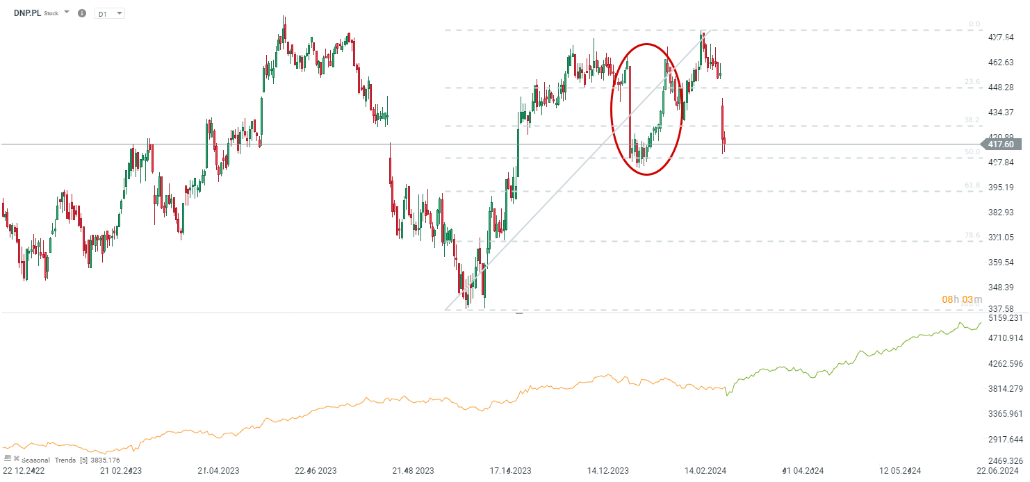 Patrząc na akcje Dino warto zauważyć, że obawy związane z wynikami Jeronimo Martins pojawiły się już w styczniu i akcje zostały wyraźnie przecenione, ale na koniec stycznia większość strat została wymazana. Czy tym razem będzie podobnie? Perspektywy wydają się być bardziej mieszane, ale Dino wciąż pozostaje mocno perspektywiczną spółką pod względem dalszego rozwoju. Źródło: xStation5