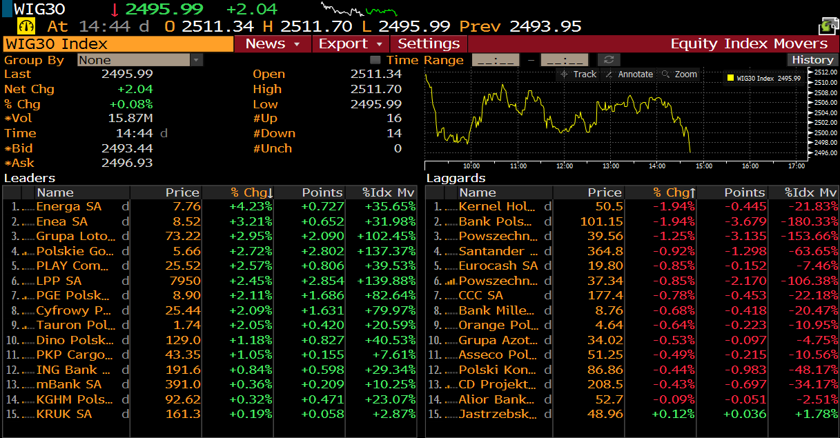 Zestawienie komponentów indeksu WIG30. Źródło: Bloomberg.