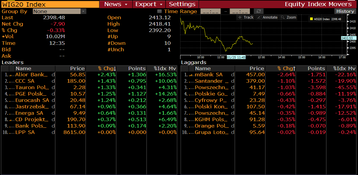Zestawienie komponentów indeksu WIG20. Źródło: Bloomberg.