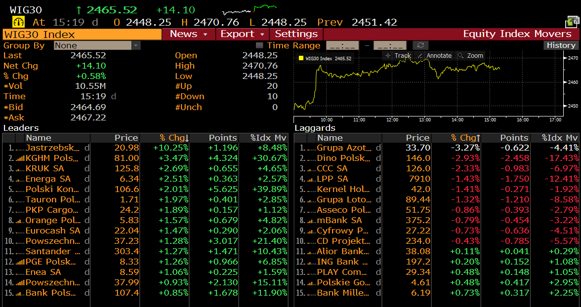 Spółki z indeksu WIG30. Źródło: Bloomberg