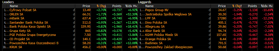 Spółki wchodzące w skład indeksu WIG20. Źródło: Bloomberg Finance L.P.