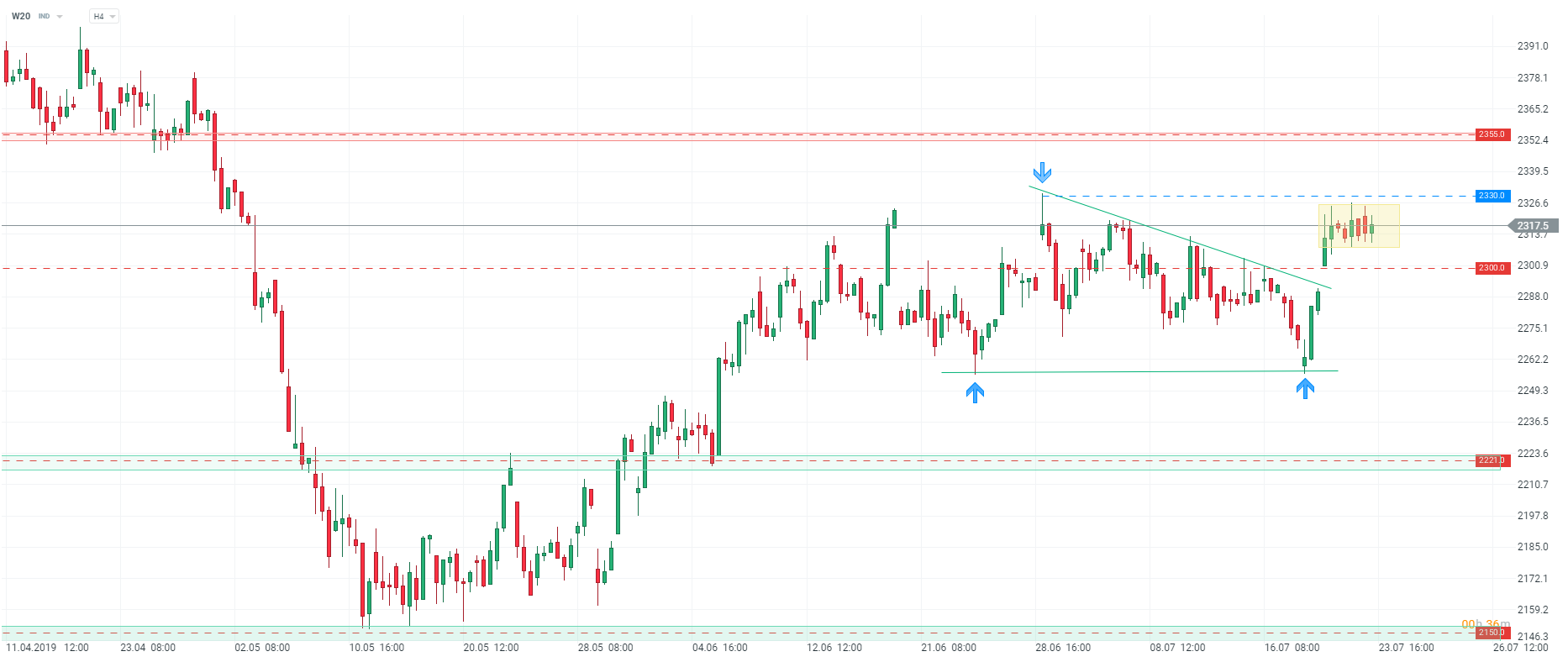 W20 nie wykorzystuje momentum wzrostowego, kurs wpada w konsolidację. Źródło xStation5