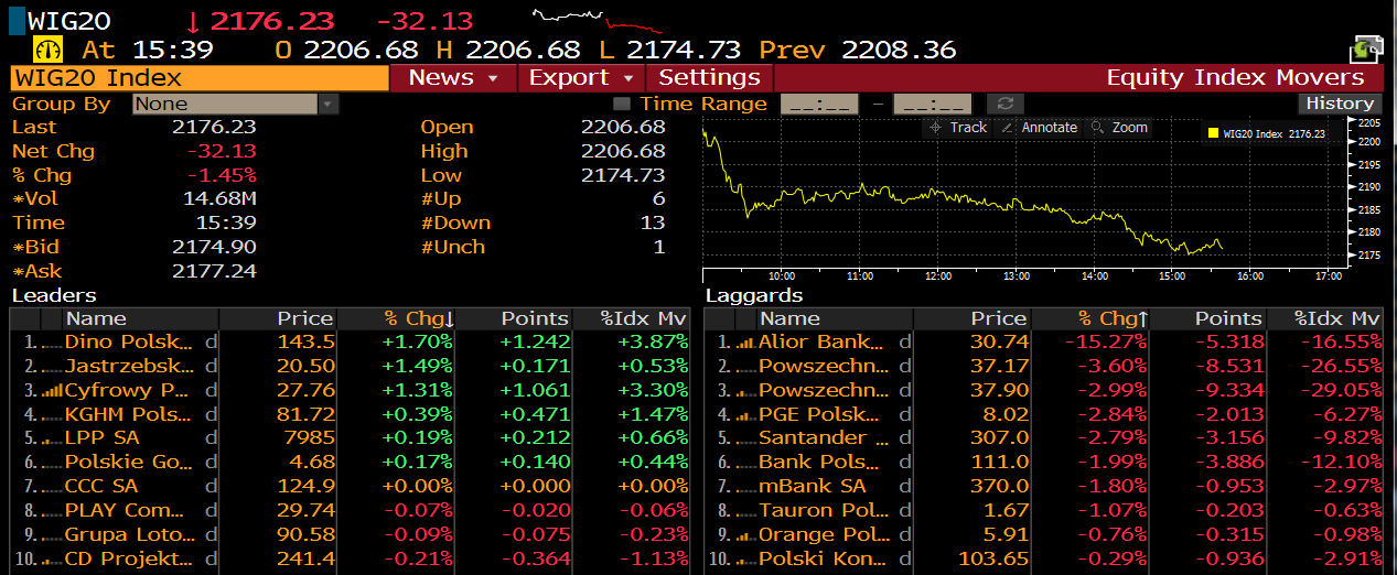 Spółki z indeksu WIG20. Źródło: Bloomberg