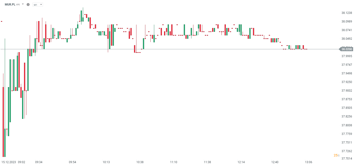 Udany debiu ma za sobą deweloper Murapol. Kurs akcji sięgnął okolic 38 zł przy cenie oferowanej w IPO na poziomie 33 zł. Wobec tego wzrost akcji wynosi ponad 15%. Warto pamiętać, że to pierwszy debiut na szerokim warszawskim parkiecie od 2 lat.