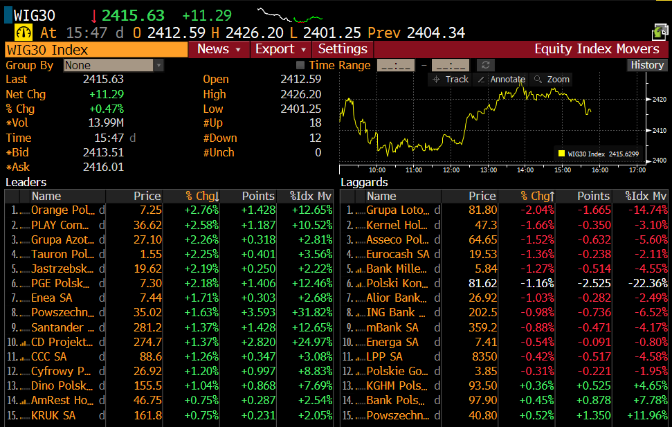 Spółki z indeksu WIG30. Źródło: xStation5