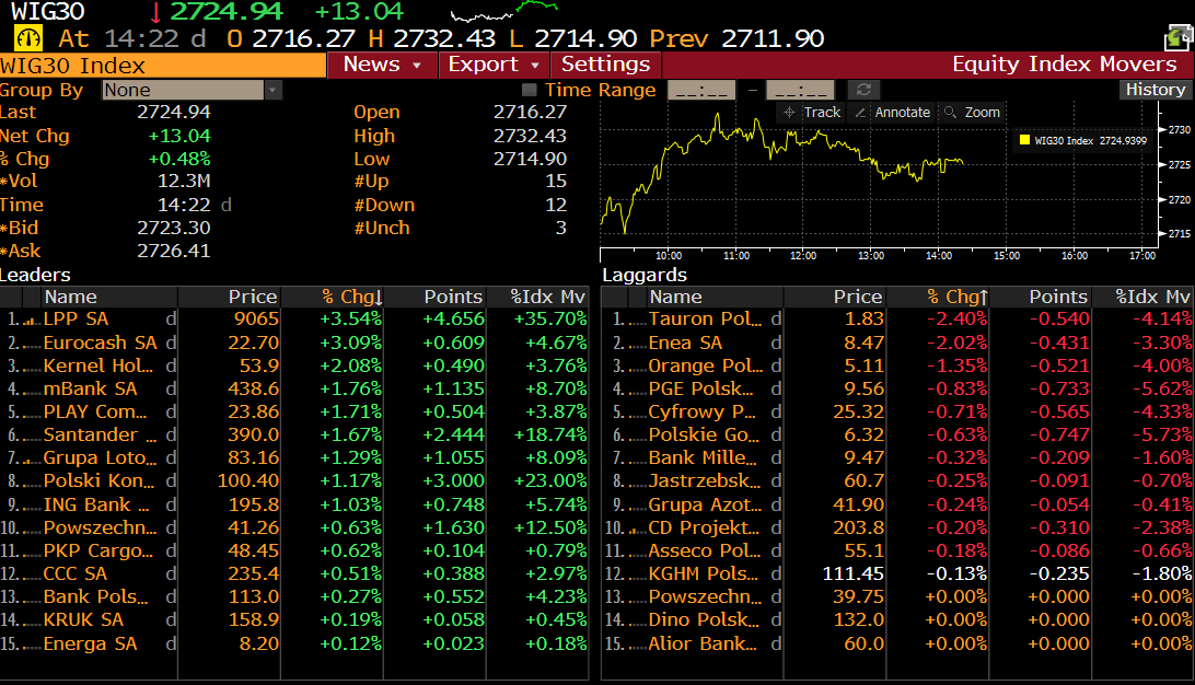 Zestawienie komponentów indeksu WIG30. Źródło: Bloomberg.