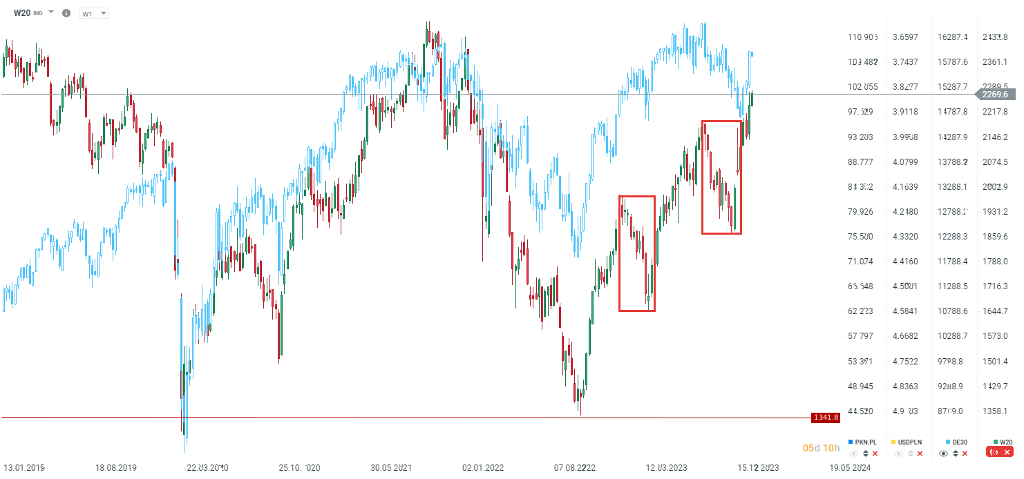 - Indeks WIG20 walczy o nowy szczyt w 2023 roku