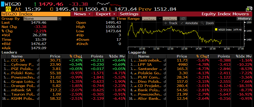 Spółki z indeksu WIG20. Źródło: Bloomberg